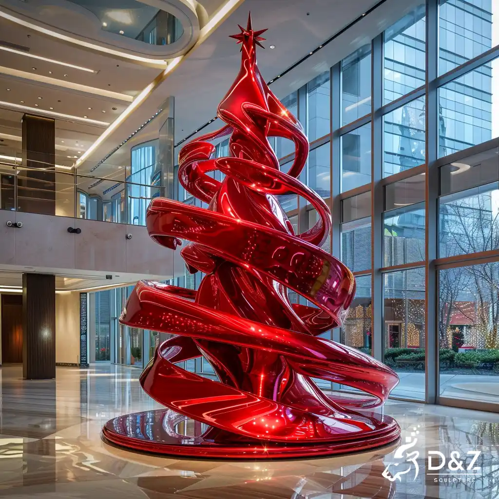 Plaza entrances: Draws crowds with its bold red presence, outshining typical outdoor Christmas tree sculpture options.