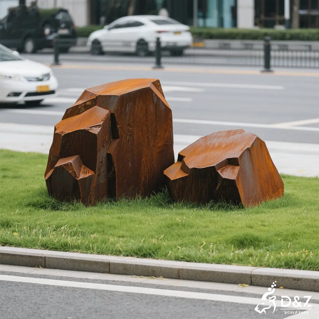 Our design philosophy for this abstract rock sculpture centers on the intersection of nature and industry. Unlike traditional stone, this metal rock sculpture features faceted, geometric planes that catch light and shadow, creating a dynamic visual experience. It represents a modern interpretation of a stacked rock sculpture, symbolizing stability and balance. The purposeful abstraction allows it to blend seamlessly into corten steel garden art collections or stand alone as a bold, big rock statue in a minimalist setting. This is more than just a landscape rock sculpture; it is a piece of art that evolves with time. The concept of “weathering” reflects the passage of time. As the steel interacts with the environment, its color shifts from metallic grey to a warm, protective rust orange. This rock sculpture serves as a permanent anchor in a changing world, offering a sense of history and grounding to any public space or private garden.