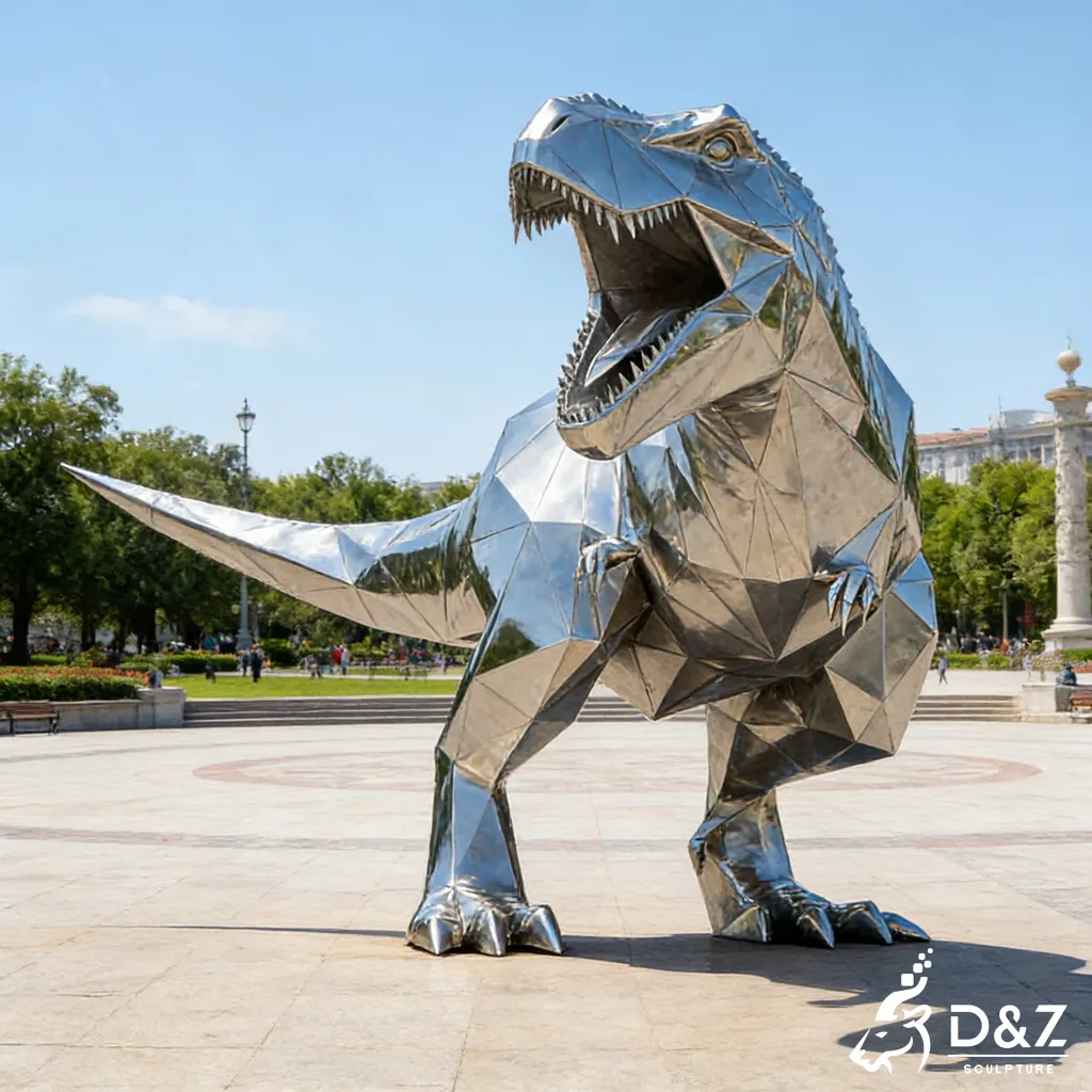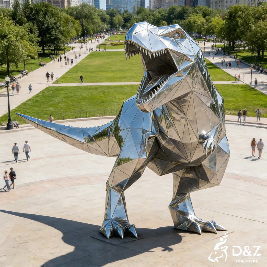 Our T. rex sculpture is a bold, large-scale metal masterpiece that blends modern origami aesthetics with the iconic power of the Tyrannosaurus Rex. Crafted from premium stainless steel, this metal T. rex sculpture is designed for outdoor durability and visual impact, making it perfect for playgrounds, parks, gardens, and themed attractions. As a professional sculpture factory with 30 years of experience, D&Z Art Sculpture offers fully customized solutions to bring your vision to life.