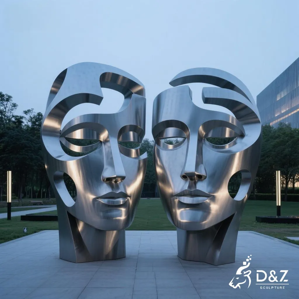 Transform your outdoor or indoor space with this large modern geometric two-face sculpture from D&Z Art Sculpture. This striking face sculpture merges contemporary design and emotional depth, expressing the coexistence of duality and balance. Perfect for garden art, hotel entrances, or public plazas, it becomes an unforgettable visual centerpiece that captures attention and inspires conversation.