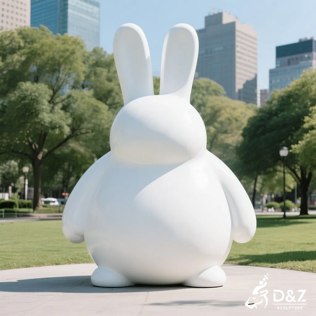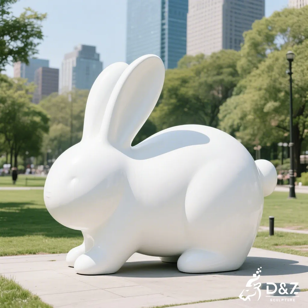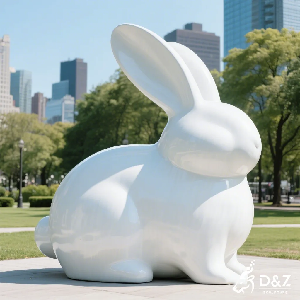 This abstract rabbit sculpture is designed to harmonize with nature while providing a bold focal point. By stripping away intricate details and focusing on the pure white form, the sculpture reflects light beautifully, symbolizing purity and modern elegance. It serves not just as a rabbit art sculpture but as a conversation piece that elevates the aesthetic value of its environment.