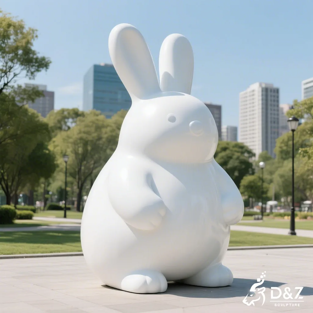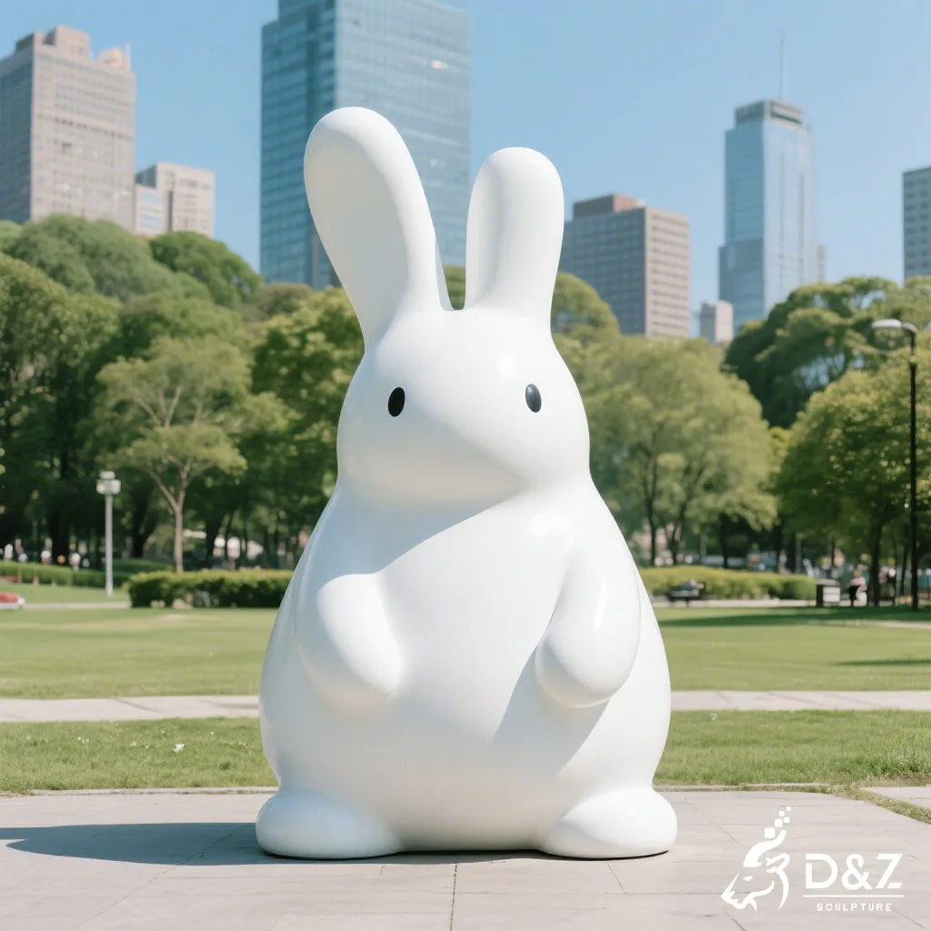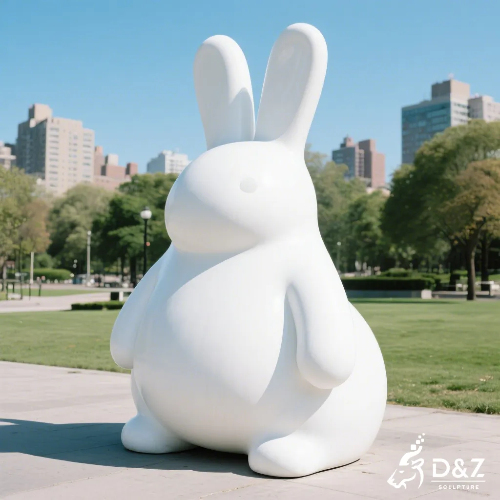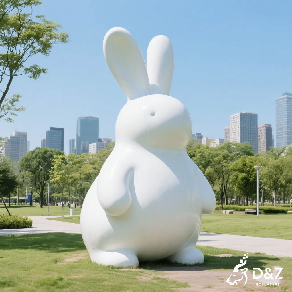This abstract rabbit sculpture is designed to harmonize with nature while providing a bold focal point. By stripping away intricate details and focusing on the pure white form, the sculpture reflects light beautifully, symbolizing purity and modern elegance. It serves not just as a rabbit art sculpture but as a conversation piece that elevates the aesthetic value of its environment.