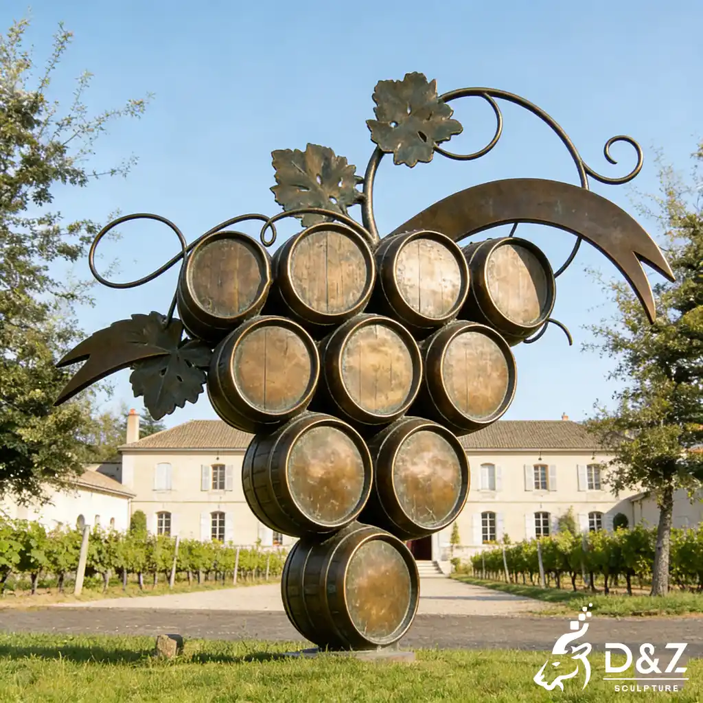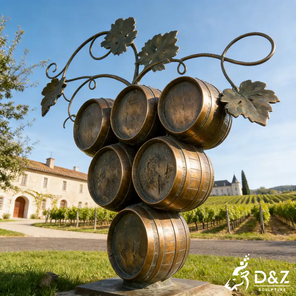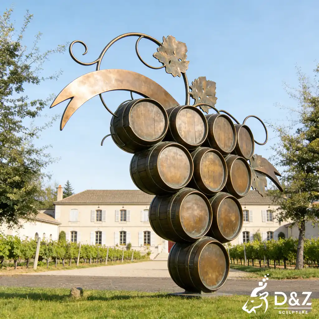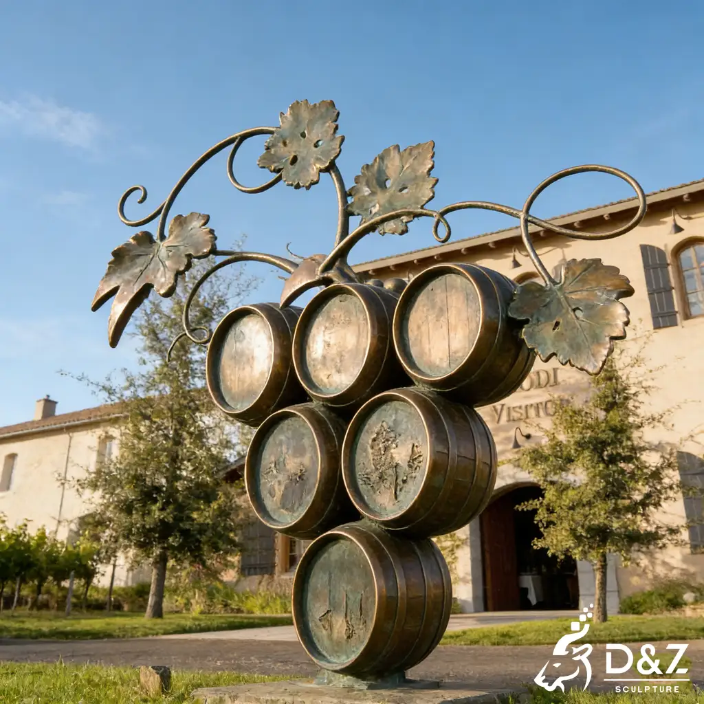 Are you looking to elevate your vineyard’s identity? Our large bronze wine barrel sculpture is a masterpiece designed specifically for luxury chateaus and professional wineries. Handcrafted from high-quality bronze, this grape sculpture combines the rustic charm of traditional casks with the elegance of fine art, creating a landmark vineyard sculpture that attracts visitors and enhances brand prestige.