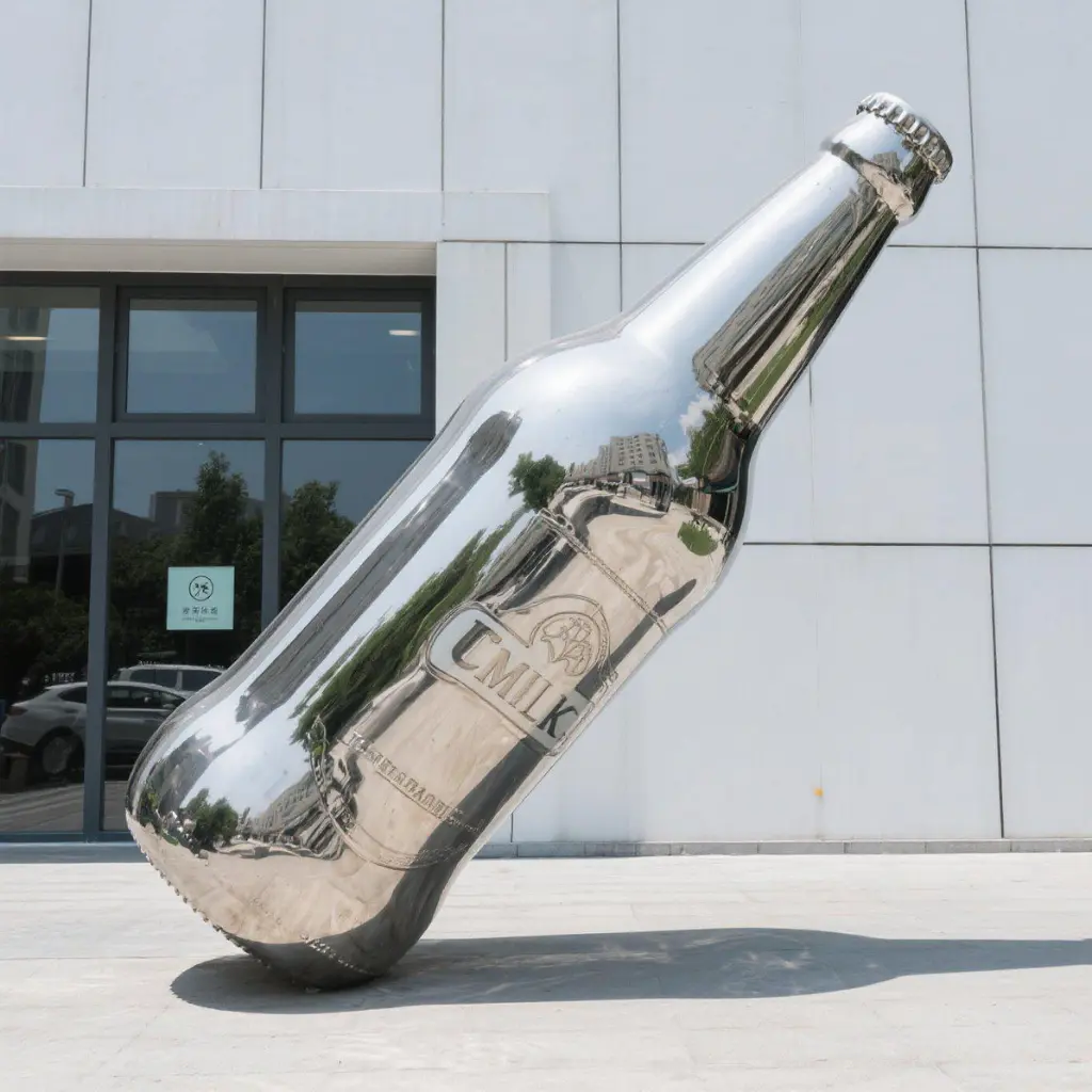 More than just decoration, this wine bottle sculpture reimagines the classic wine bottle as a piece of contemporary art. Passersby can see themselves in the sculpture’s reflective surface, creating a fun and interactive moment. This invites social sharing and boosts visibility—great for locations looking to enhance their brand or atmosphere. Whether as a beer bottle sculpture, a Coke bottle sculpture, or a water bottle sculpture, the visual impact remains strong. Its sleek lines and mirror finish reflect the energy of the city, making it ideal for modern outdoor settings.