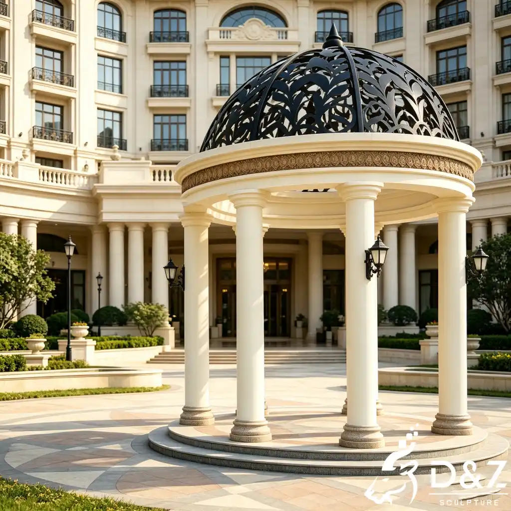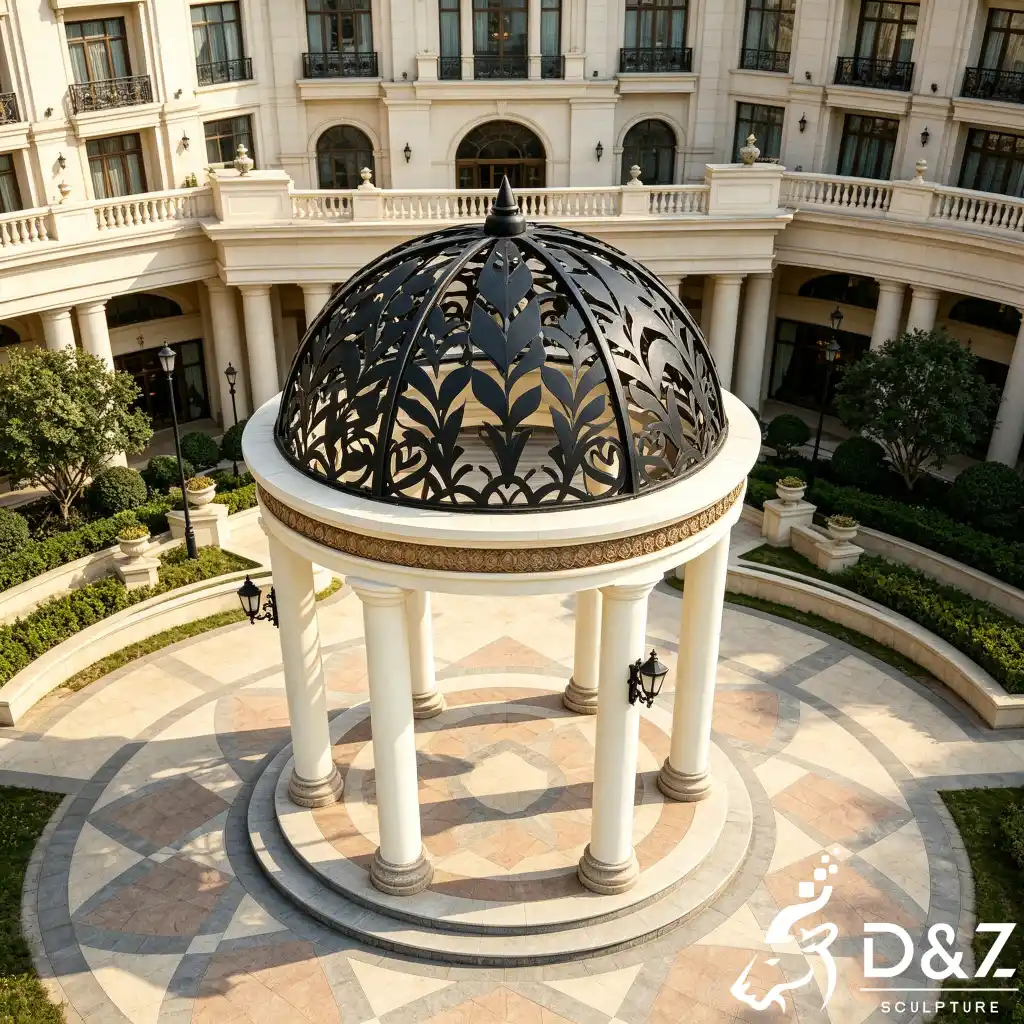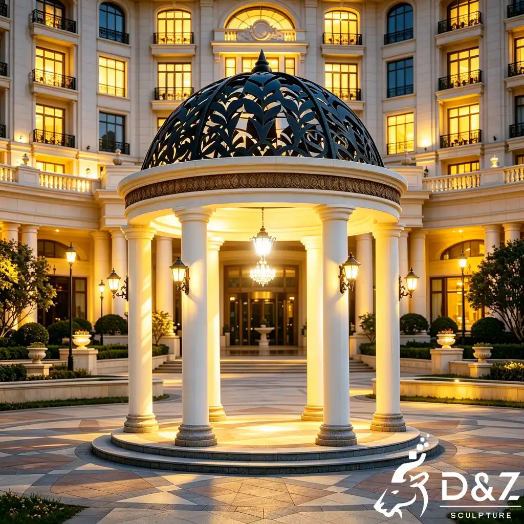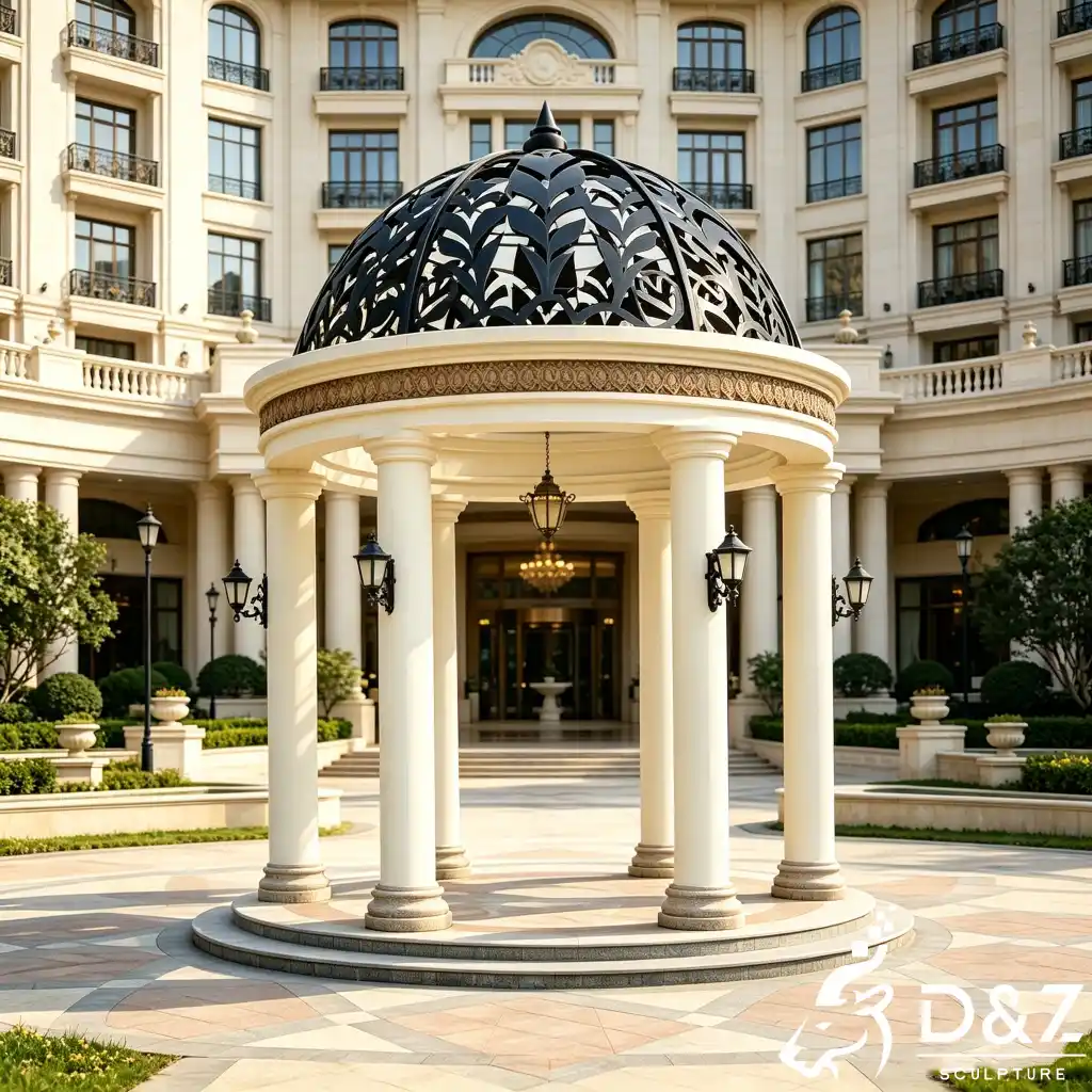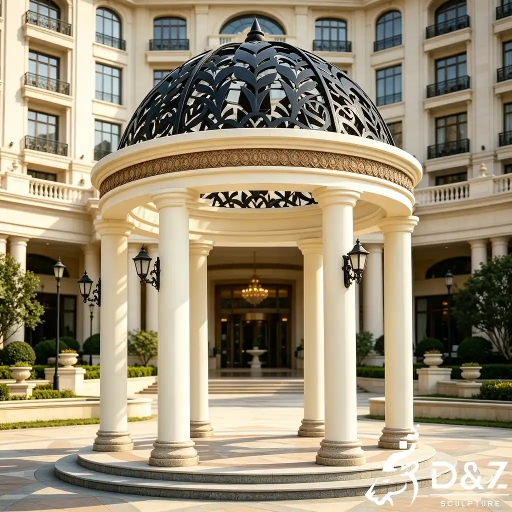 Transform your outdoor space into a masterpiece of art and architecture with the wrought iron dome gazebo. Designed by D&Z Art Sculpture, this luxury gazebo pavilion perfectly blends French neoclassical aesthetics with modern durability. Whether placed in a private villa courtyard, a luxury hotel entrance, or a romantic garden, this dome gazebo creates an immediate visual focal point, exuding the noble elegance of European royal gardens.